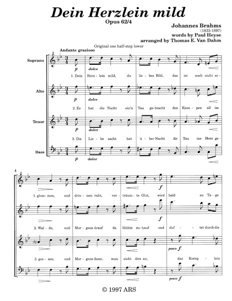 Playing these two Brahms Leider may be a departure for some members of the American Recorder Society. Not only are they strictly vocal music—art songs for unaccompanied chorus—but the rich Romantic harmonies may be startling.The Challenge will be not only to play the notes but to make the songs as expressive as they are when sung.